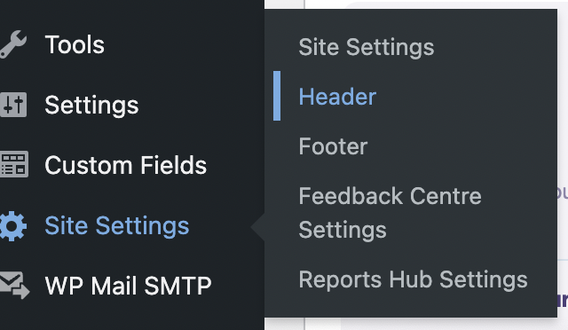 Click Site Settings then click 'Header' this will reveal a new page that looks like this:
