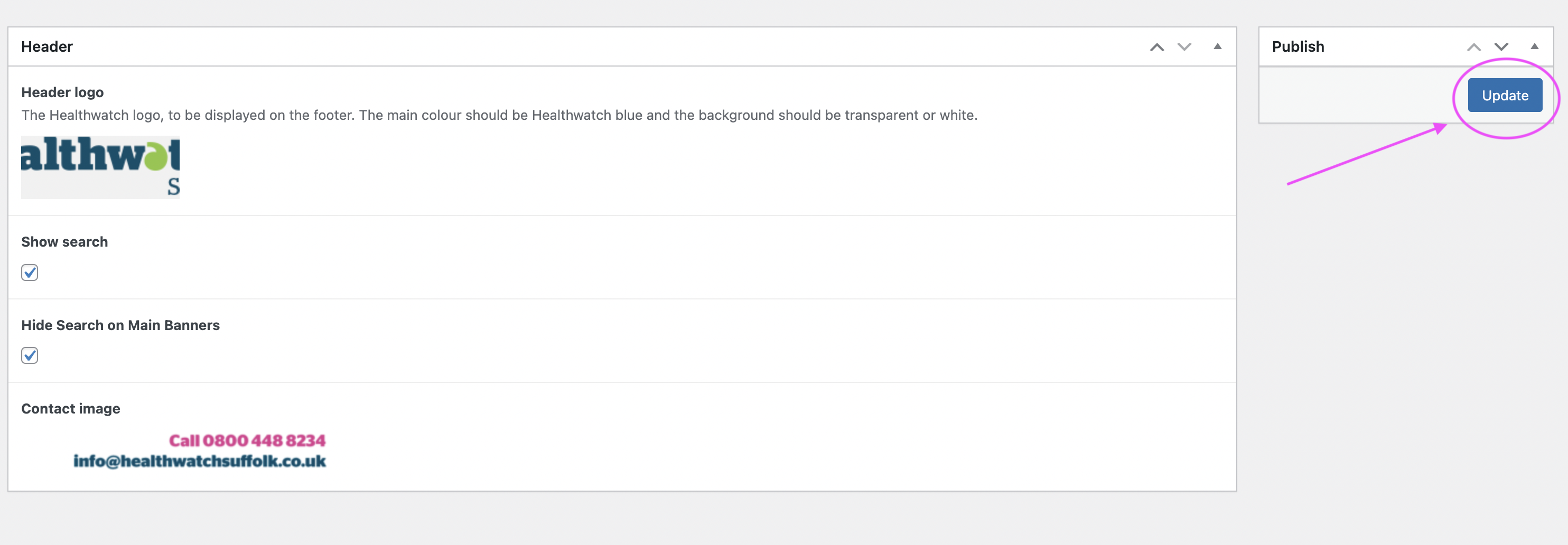 Be sure to hit the 'update' button. Once you've done so, your header will look like this: