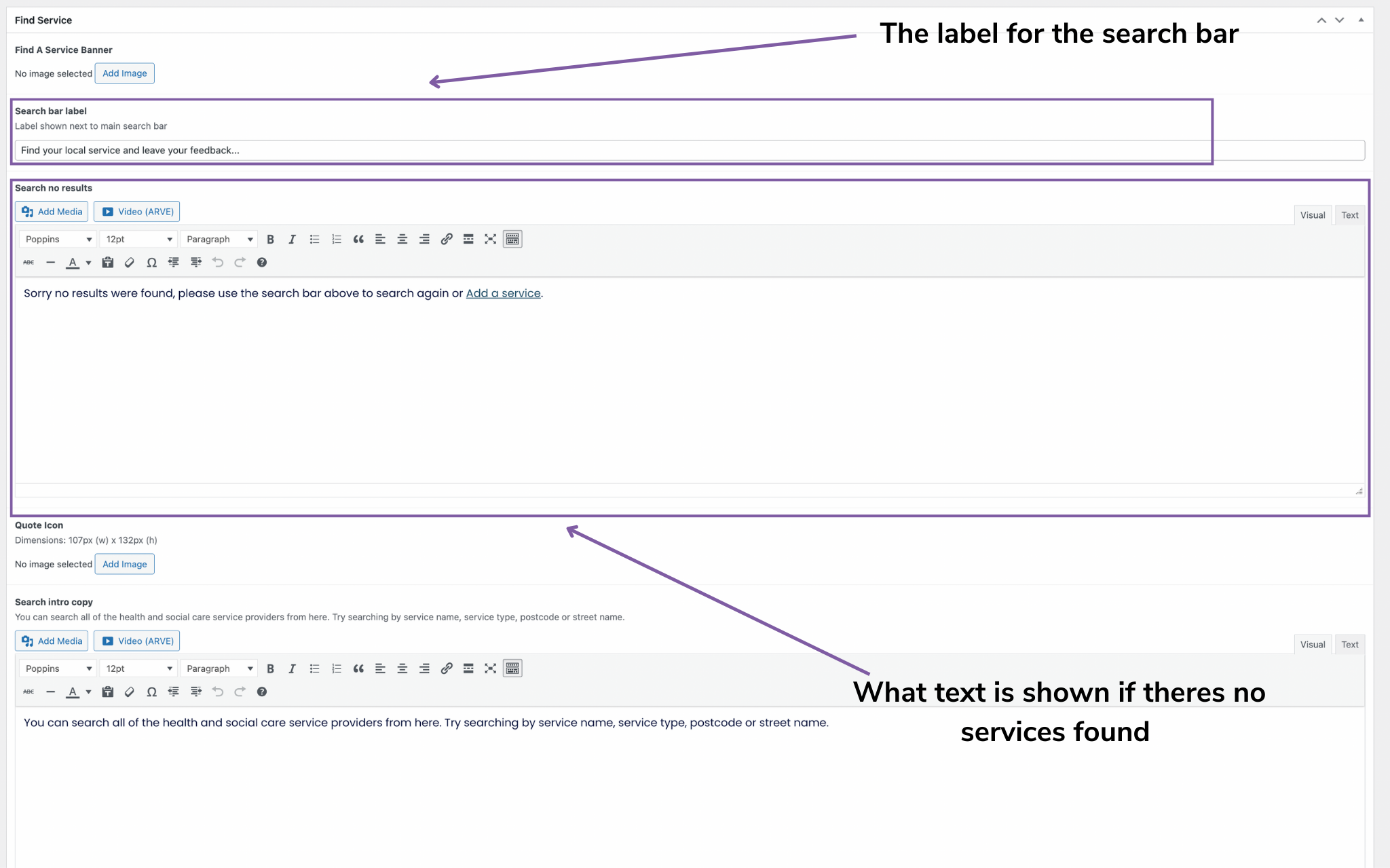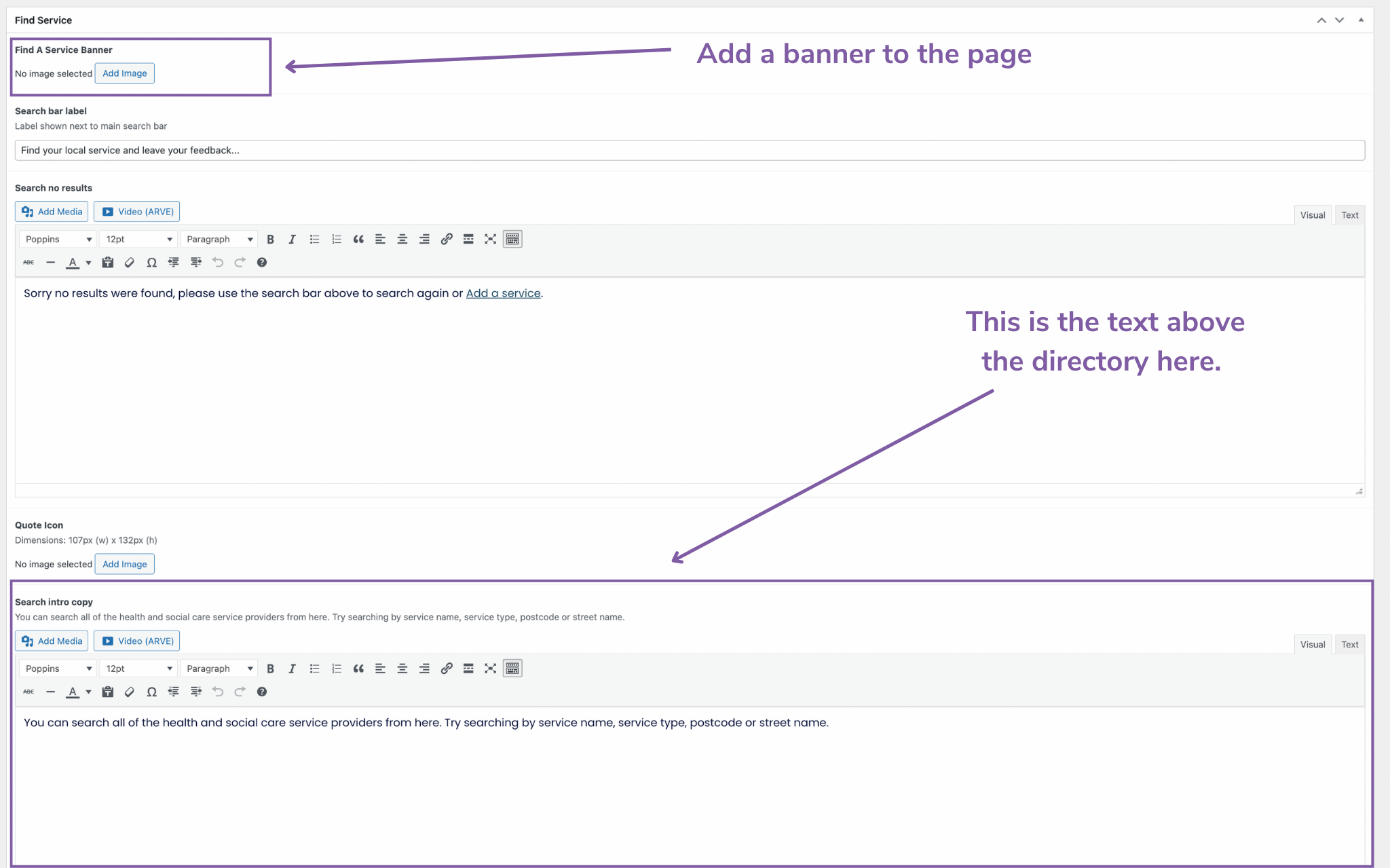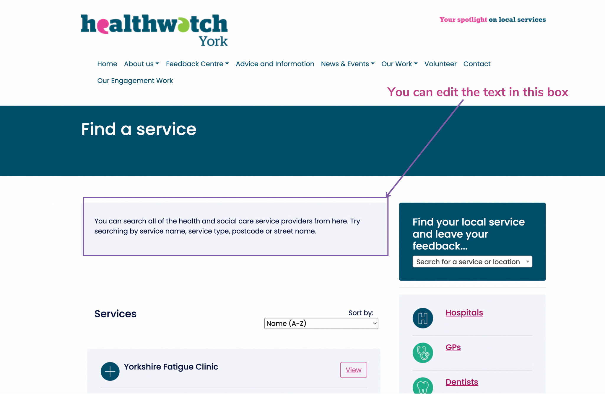 How to edit the 'Find a Service' page