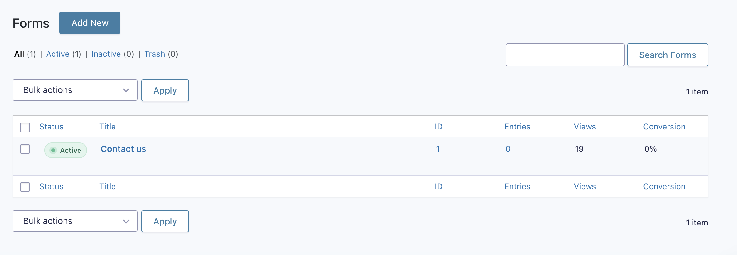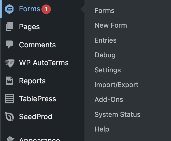 To limit the chances of spam getting through on your forms please add captchas to each form you create. To do this head over to your Forms in the Wordpress dashboard like so: