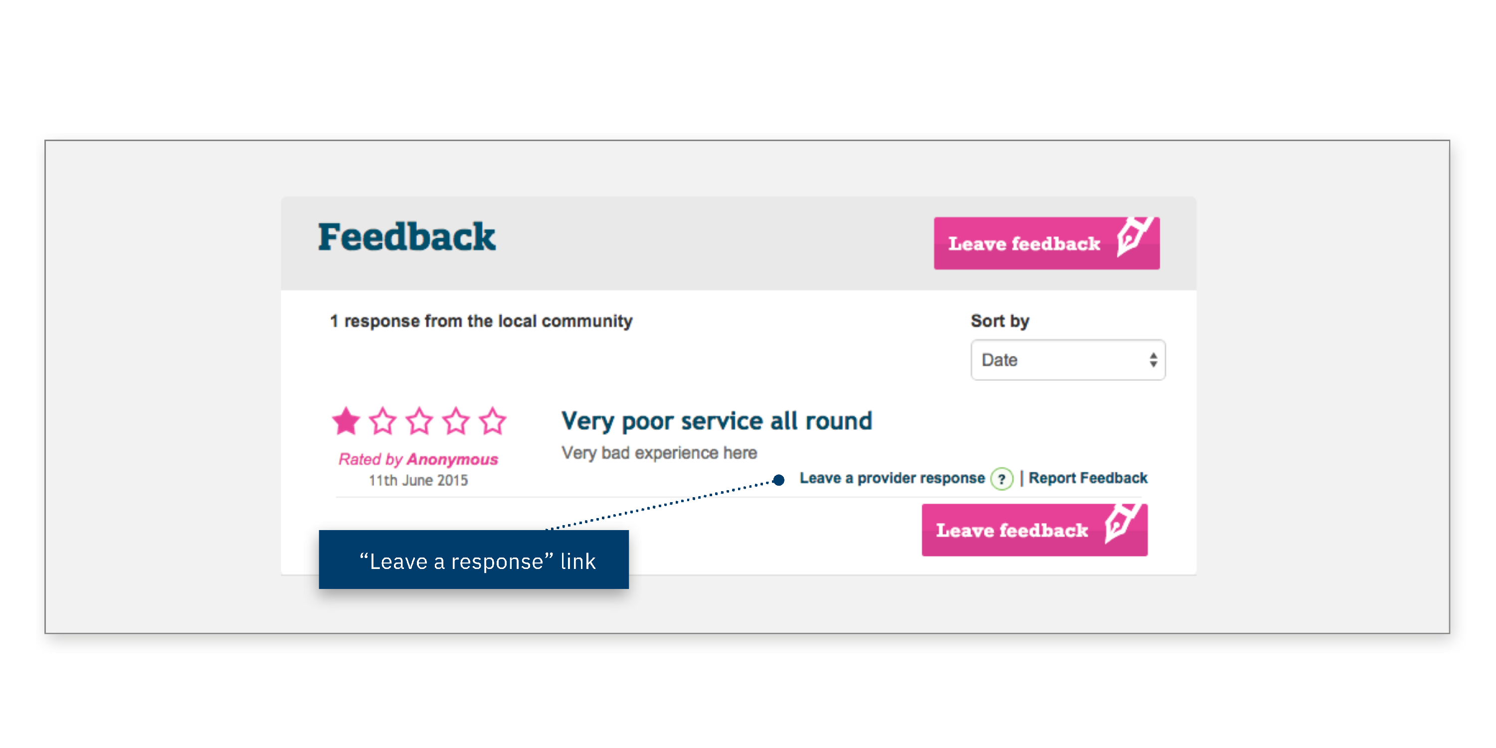 When a review is left the provider will be able to click on “Leave a provider response”.