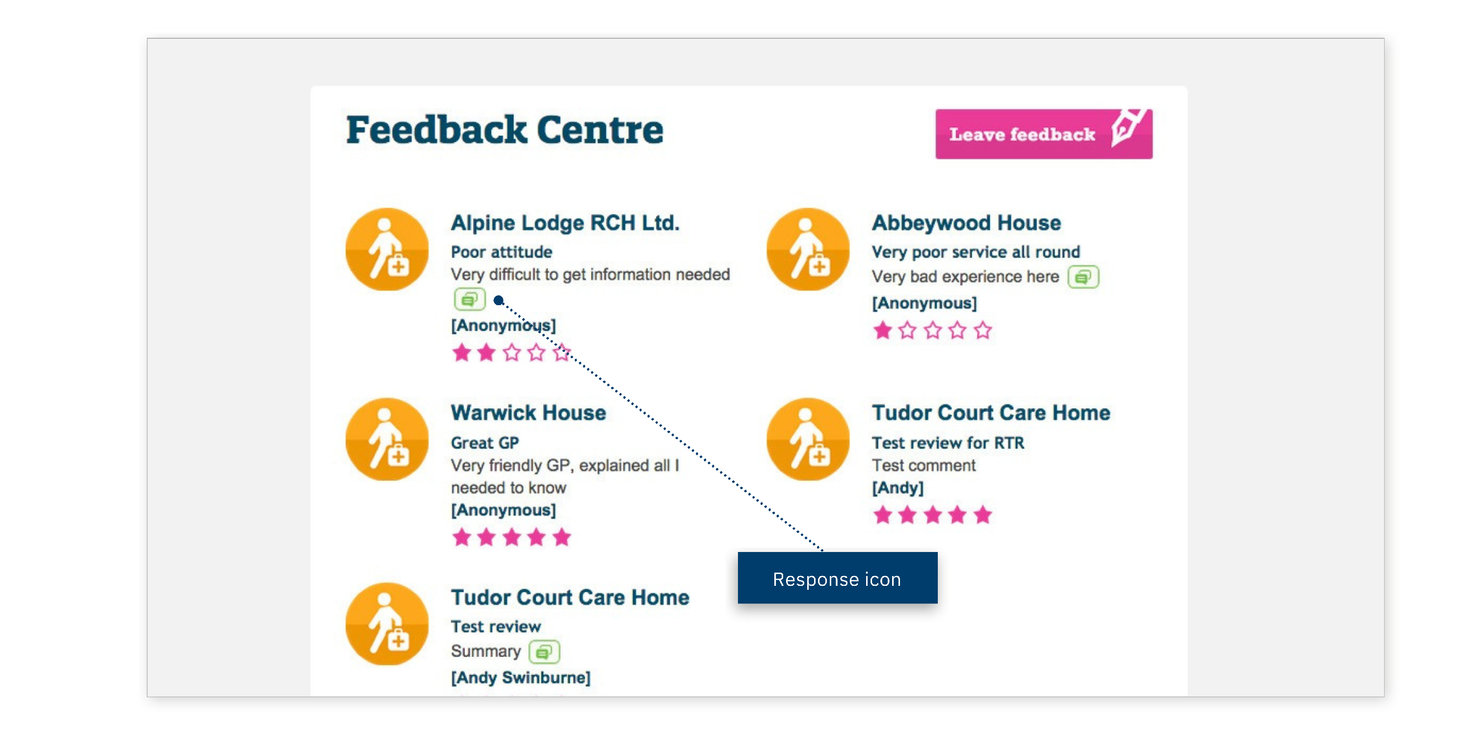 Where a review has received a provider response this is indicated by an icon beneath that review.