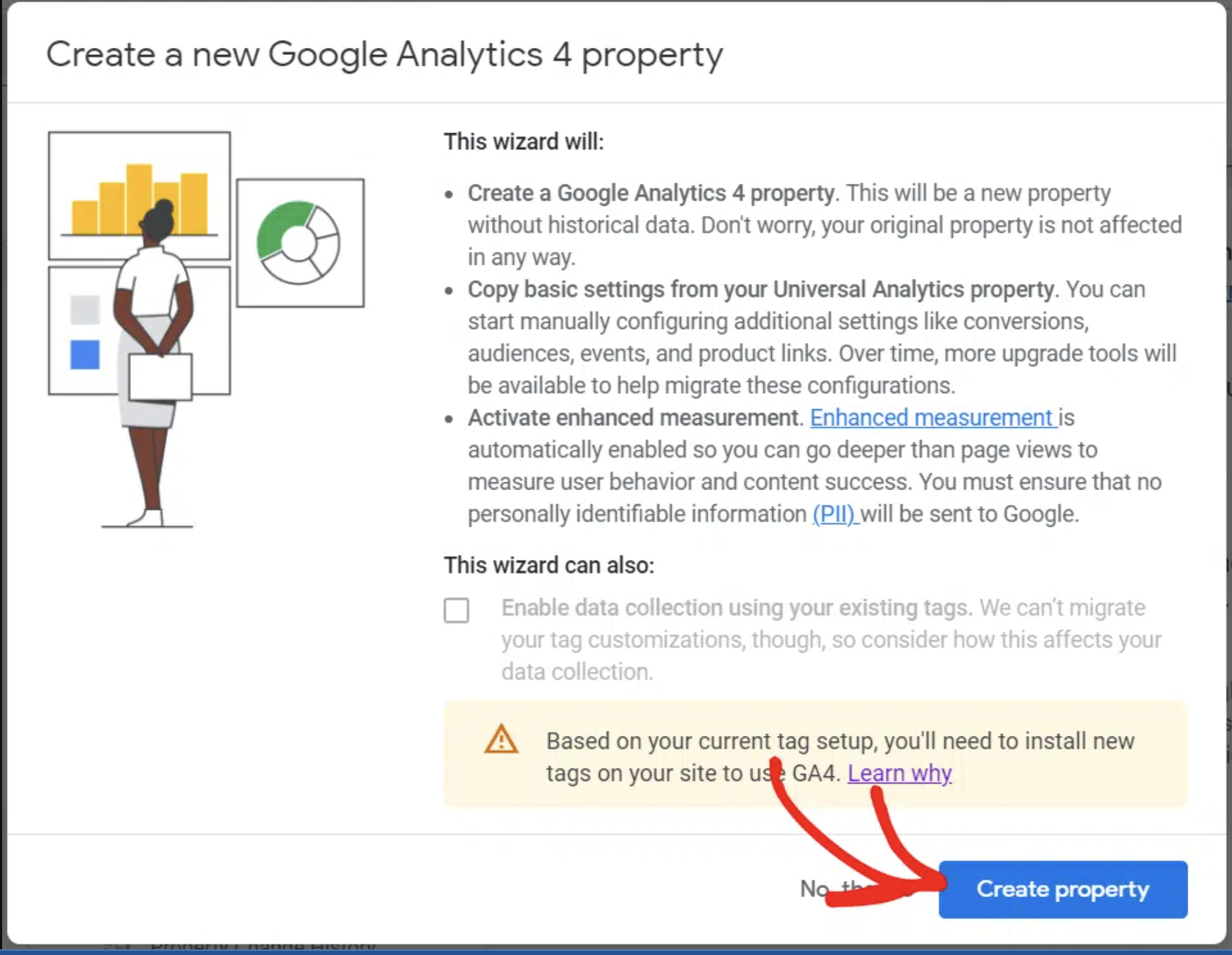 Then, click the Create Property button. The last option will either be checked or not based on which version of the tracking tag you currently have installed.