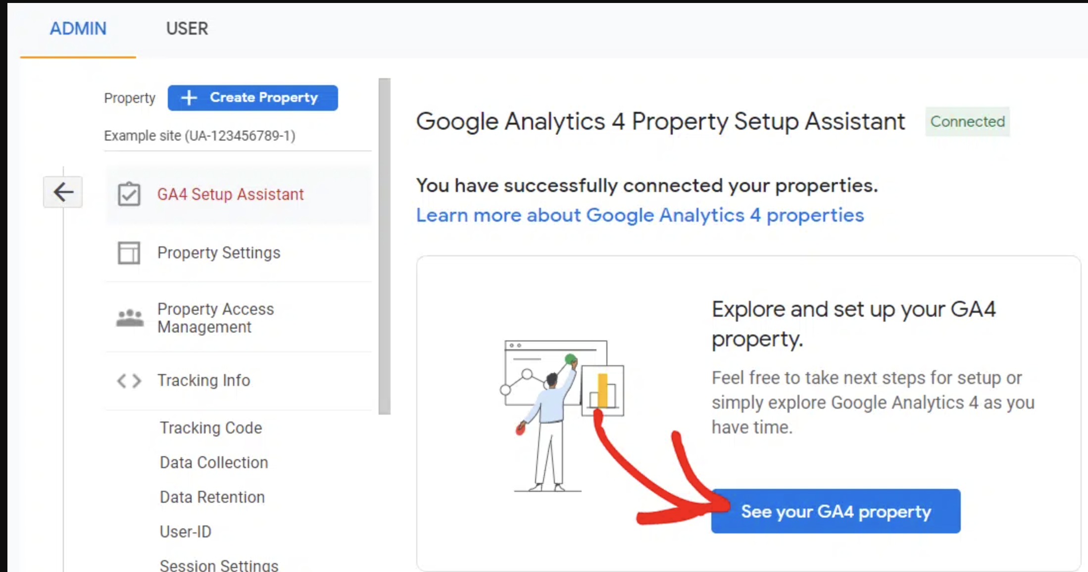 Your new property is created! Go ahead and click See Your GA4 Property.